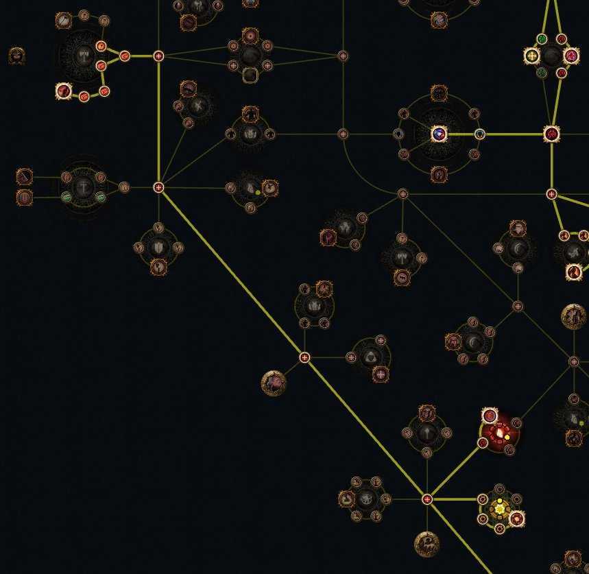 Эндшпиль с этой сборкой предлагает несколько вариантов ответвлений. В идеале вы хотели бы получить Cluster Jewels и использовать свои будущие очки навыков, чтобы усилить их. В то же время сбор вспомогательных узлов, таких как Command of Steel или +30 Attributes, может быть очень полезным. Дерево эндшпиля будет выглядеть примерно так: