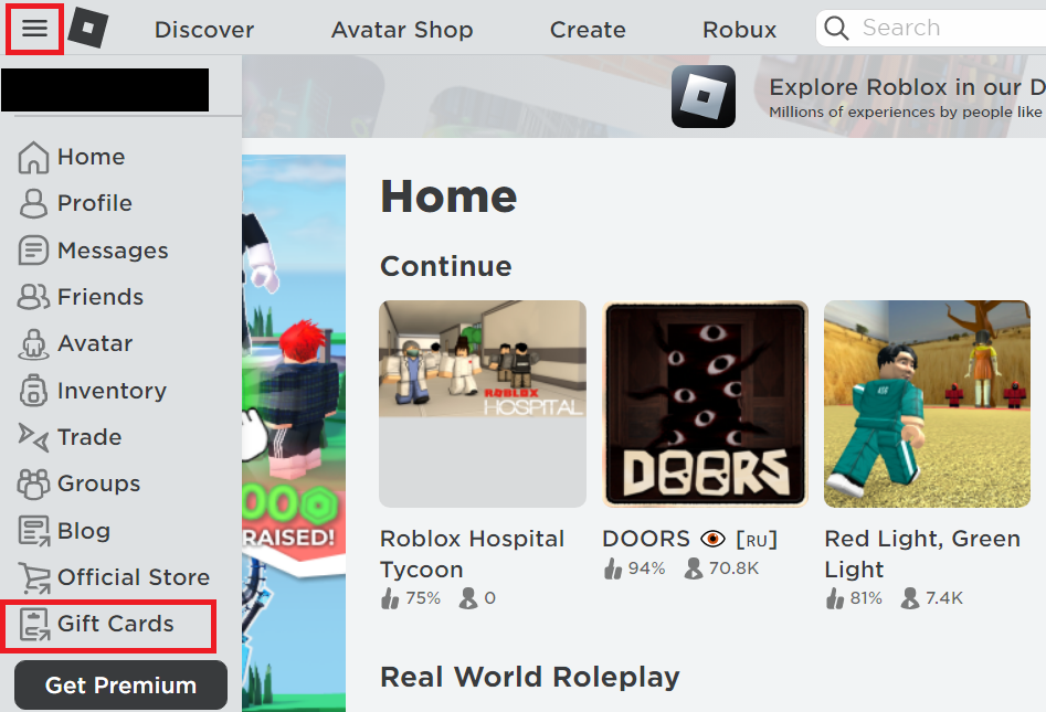 Активация промокодов осуществляется на официальной странице roblox com. Следуйте маршруту, приведенному ниже.