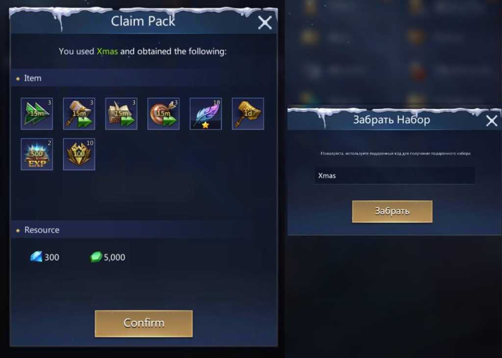 - Xmas – подарочный промокод приурочен к Рождеству и Новому 2021 Году. Подарочный набор включал в себя: 3 х 15 мин Ускорение, 3 х 15 мин Ускорение строительства, 3 х 15 мин Ускорение исследования, 3 х 15 мин Ускорение тренировки, 10 х Перо Феи, 1 х 1d Доп. очередь Строительства, 2 х 500 Опыт Лорда, 10 х 100 Опыта Саурой, 300 Алмазов и 5000 Камней Души. Количество активаций ограничено!