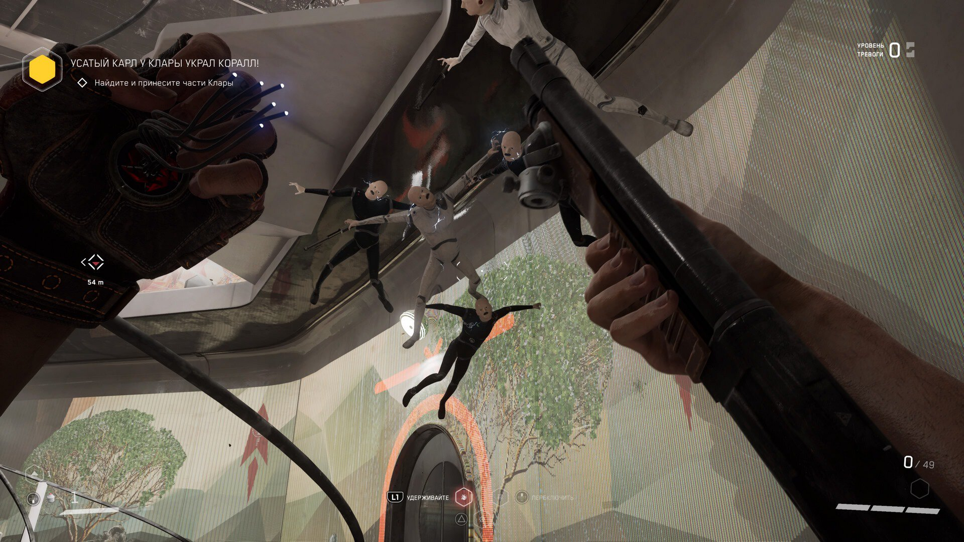 Чтобы привлечь внимание врагов, достаточно открыто использовать оружие. На втором уровне тревоги количество противников заметно возрастет, а прохождение усложнится