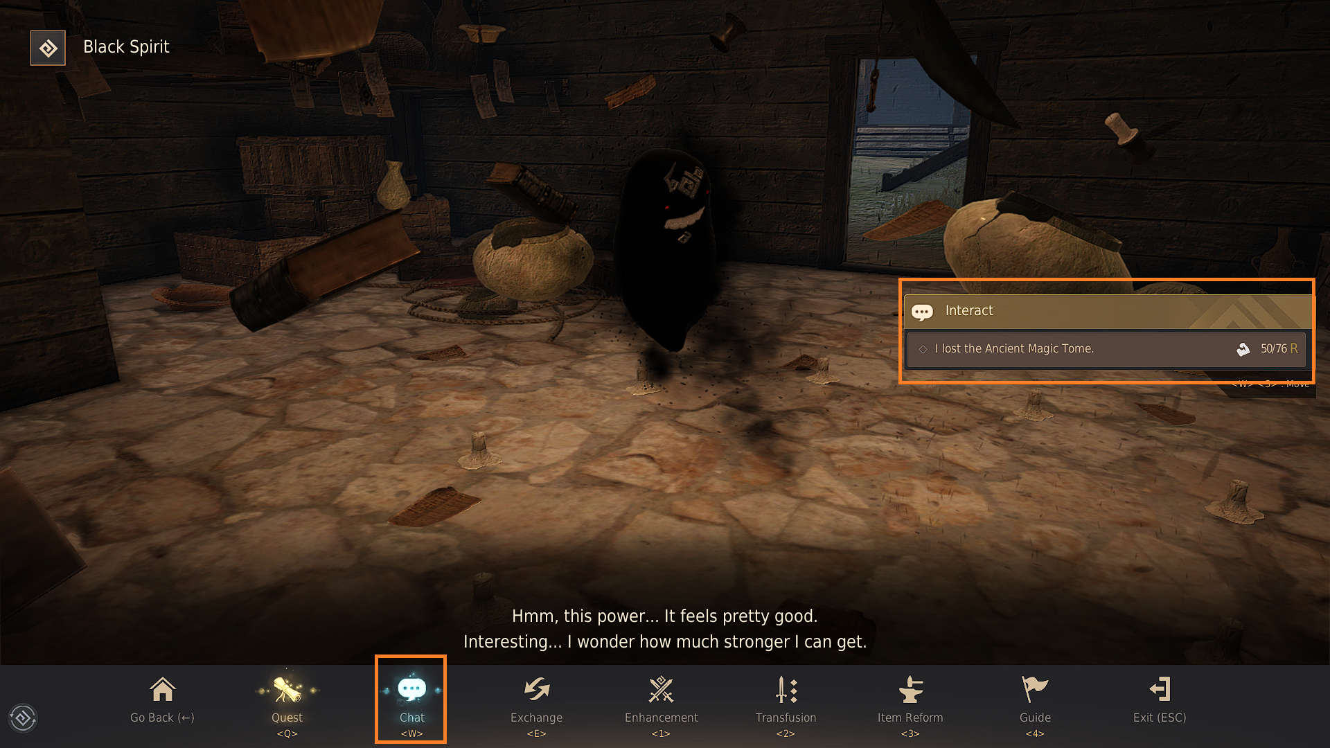 If you are unsuccessful in attacking the smaller blue flame, you will need to try again. Speak to your Black Spirit to get the Ancient Magic Tome back. This will cost 50 energy and then an additional 50 energy to resummon the flame.