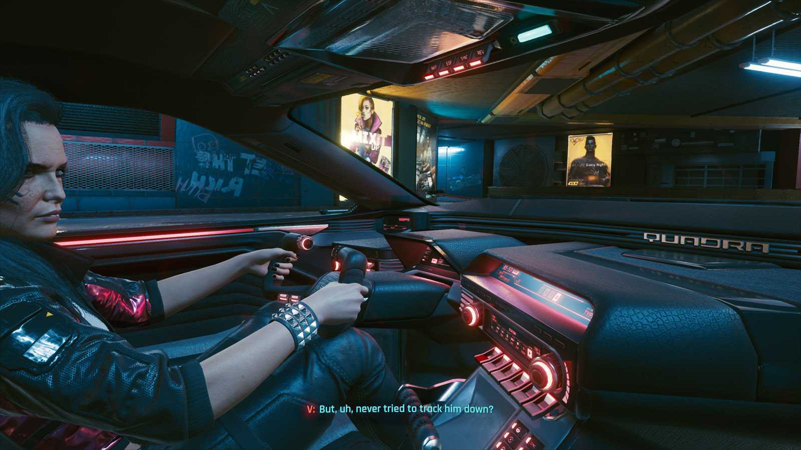 - Самый рабочий способ — необходимо в игре Киберпанк 2077 запустить любую катсцену. Например, вы можете начать выполнять сюжетный квест (где будет какая-либо катсцена), либо можете найти и воспользоваться услугами проституток (где также будет проиграно игровое видео).