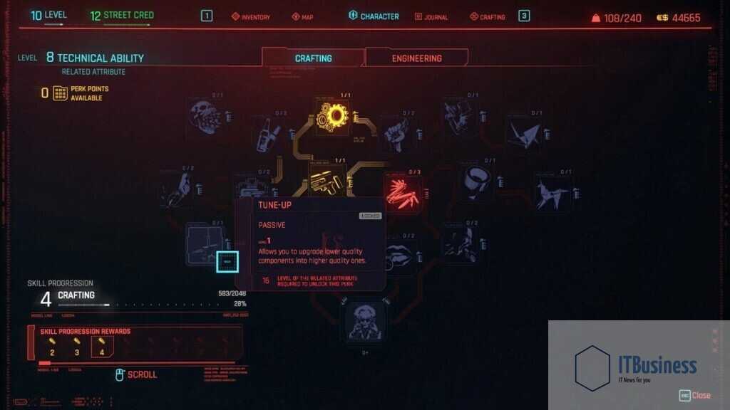 Если вы планируете много заниматься крафтингом и настроены на создание снаряжения конечного уровня, включая редкие и легендарные предметы, вы захотите вложить некоторые очки своих атрибутов в технические способности, а очки перков — в навыки крафта. . Хотя вам, вероятно, удастся создать обычные или, возможно, необычные предметы на довольно низком уровне, хорошие вещи можно разблокировать только путем повышения вашего мастерства и получения связанных перков.