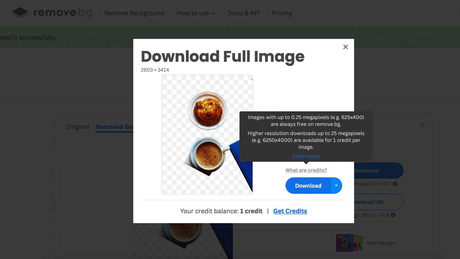 Условия: за регистрацию на сайте вы получите один кредит, и им можно «оплатить» скачивание одного изображения в хорошем качестве. Далее — либо переходить на платное использование сервиса, либо забирать обработанные картинки в невысоком разрешении 625×400 пикселей.