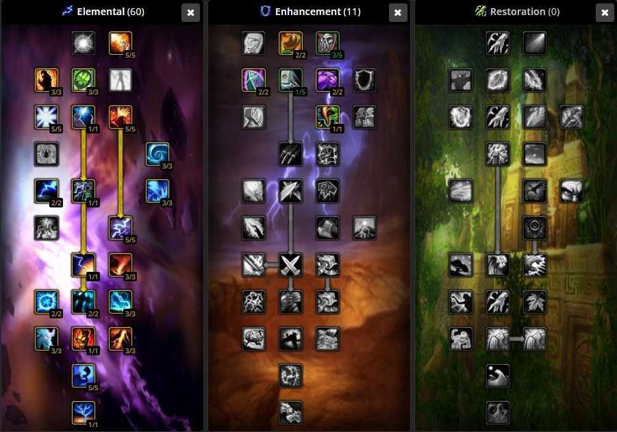 Расстановка талантов (билдов) для шамана элема 3.3.5