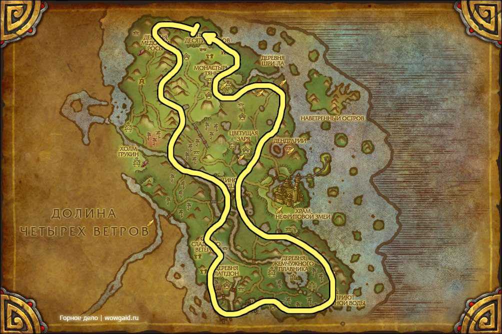 Когда выйдут Туманы Пандарии, мы дополним гайд разделом по прокачке Горного дела 525-600, в том числе появятся карты с маршрутами для новых локаций. Не забудьте купить Шахтерскую кирку для дополнительных +10 очков навыка!