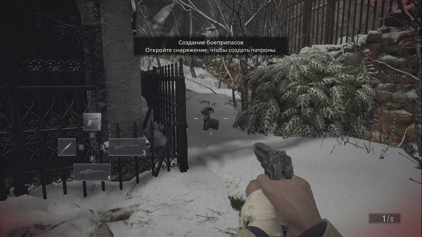 Но не стоит бояться, что Resident Evil превратилась в Far Cry — местную деревню можно обойти по периметру буквально за пять минут. А никаких сайд-квестов и прочей чепухи в игре нет. Вопросы вызывает разве что «охота» — в Village можно стрелять кур, рыбу и других животных, чтобы потом у местного торговца Герцога готовить из них еду. Блюд всего несколько, каждое навсегда повышает либо здоровье, либо защиту, либо скорость героя — такой вот странноватый способ прокачки. Места обитания животных отмечены на карте и зверье не возрождается, так что охота — это просто еще одна грань обшаривания локации. Механика не плохая и не грузящая — я, например, вообще за дичью не ходил, охотился только по пути, но все равно приготовил все блюда, кроме одного (для него требовалось изловить редкую рыбу). Но это слегка портит атмосферу: погрызенный оборотнями Уинтерс, ищущий дочь, а между делом общипывающий во дворах кур и закидывающий динамит в реку, выглядит чудаковато.