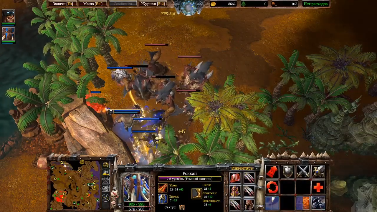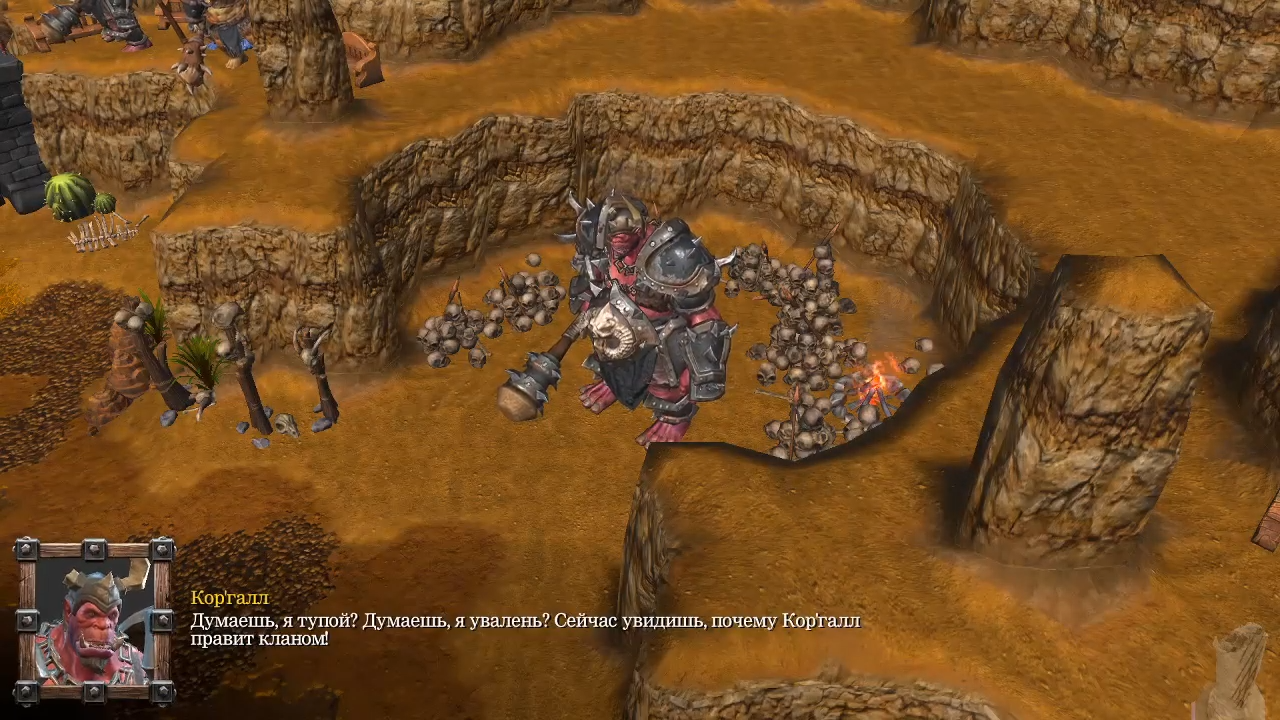 Вы снова вернетесь к Вол-Джину, потом пообщаетесь с Траллом и узнаете, что он вовсю готовится к войне. Вождь попросит вас найти ингредиенты для зачарования боевого знамени — они будут подсвечены на карте, сложностей не возникнет. После этого вам нужно будет вместе с силами орков напасть на базу Праудмура и уничтожить его замок. Вы сможете набирать войска с базы и покупать юнитов в специальных зданиях. Особых хитростей тут нет — просто продавливайте противника, используя мощь героев.