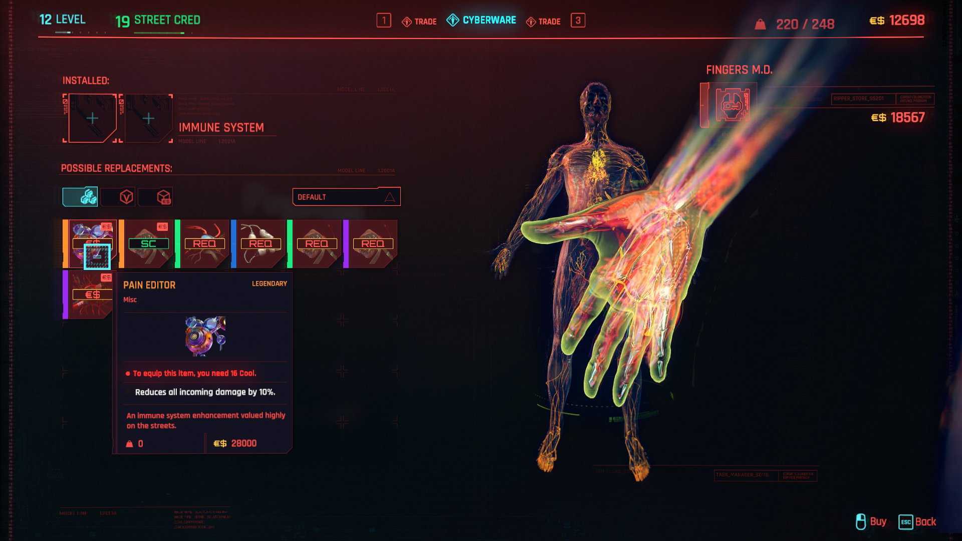 Вашему Ви не хватает убойной мощи и вы чувствуете трудности в прохождении Cyberpunk 2077? Тогда рекомендуем обратить внимание на всевозможные импланты. Большинство из них приобретаются у риппердоков и позволяют значительно усилить главного героя