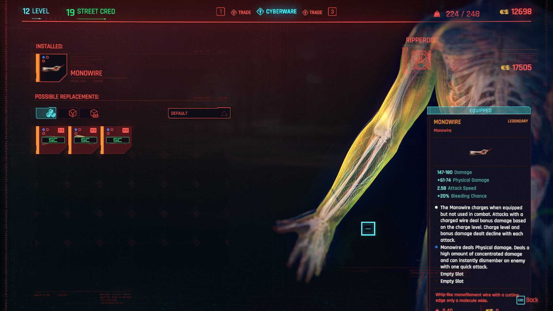 Имейте ввиду, что несколькими уникальными видами оружия в «Киберпанке» можно обзавестись только при условии, что вы установите соответствующие импланты. К ним относится: система запуска снарядов, руки гориллы, клинки богомола и моноструна. Все указанные импланты иногда выпадают из противников.