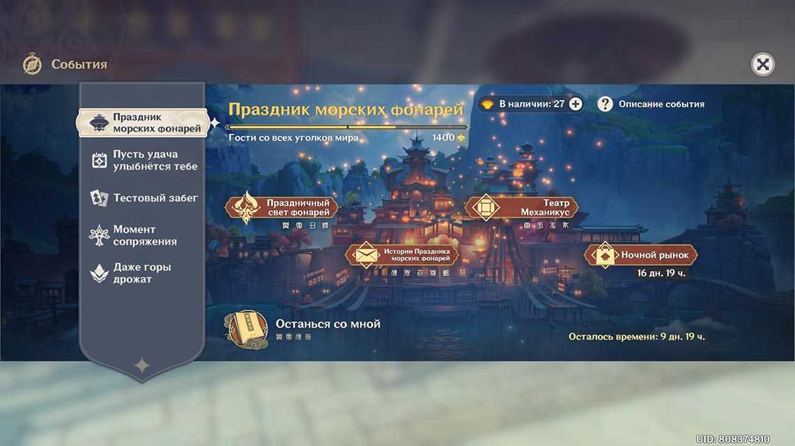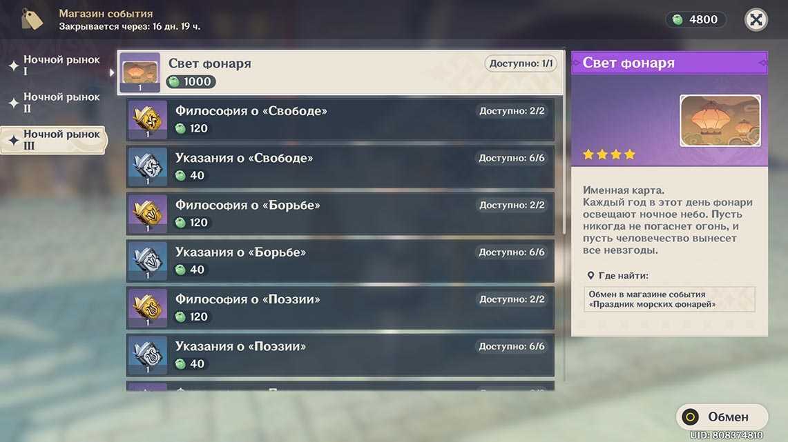 Чтобы получить 2 именные карты за «Праздник морских фонарей» в Genshin Impact, выполняйте просьбы NPC («Истории праздника морских фонарей») и задания в игре «Театр Механикус». Именную карту «Свет фонарей» можно приобрести за ивентовую валюту (1000 талисманов мира), «Механикус» вам подарят после завершения 7 этапа и выше со счётом не менее 875 очков.