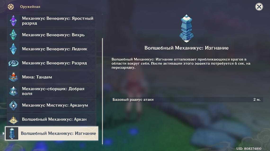 - Волшебный Механикус: Изгнание — отталкивает приближающихся мобов в области вокруг себя. Для повторного применения эффекта требуется 6-секундная перезарядка.