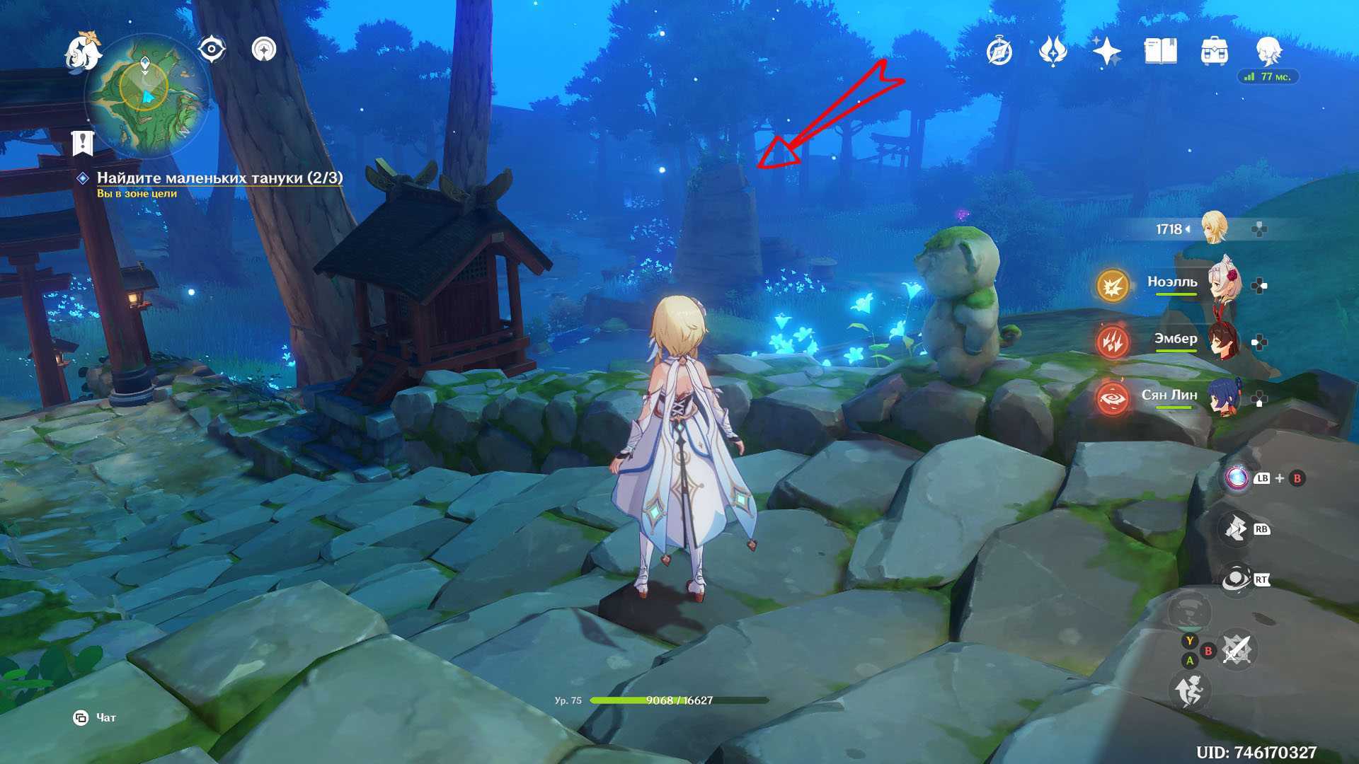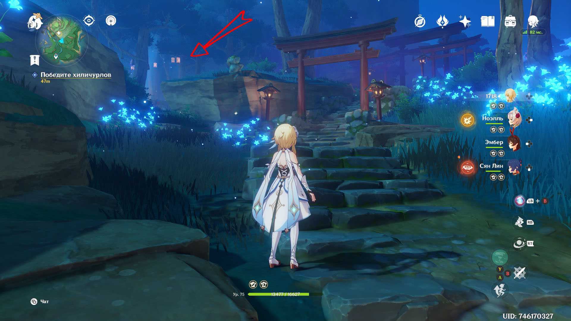 Для начала отправляемся к Катерине в город Инадзума. Она скажет вам идти на причал, чтобы поговорить с неким парнем, который отвезёт Путешественника/цу на сам остров. Говорим с теми, с кем предложит сюжет, а затем наконец доплываем к Цуруми. Пройдите через арку, чтобы найти мальчика. Поговорите с неизвестным мальчикок, который в итоге приведет вас к Громовому древу и своей семье. Тут мы получаем новый интересный квест, где нас попросят сделать подношение гнездовью.