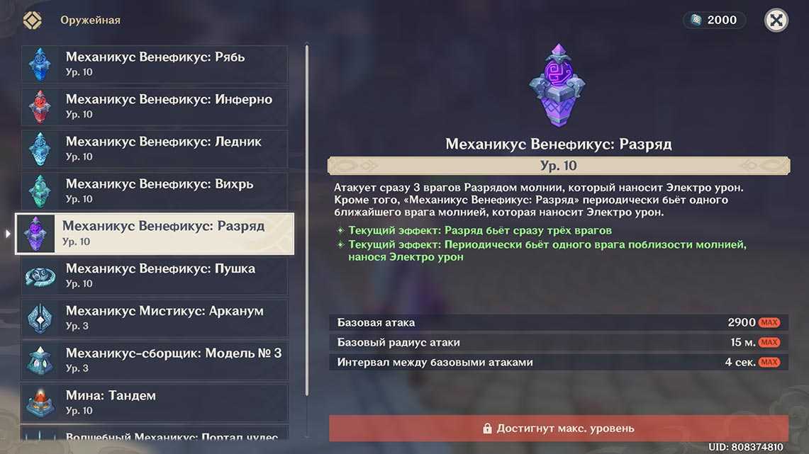 Характеристики Механикус Венефикус: Разряд на 10 уровне