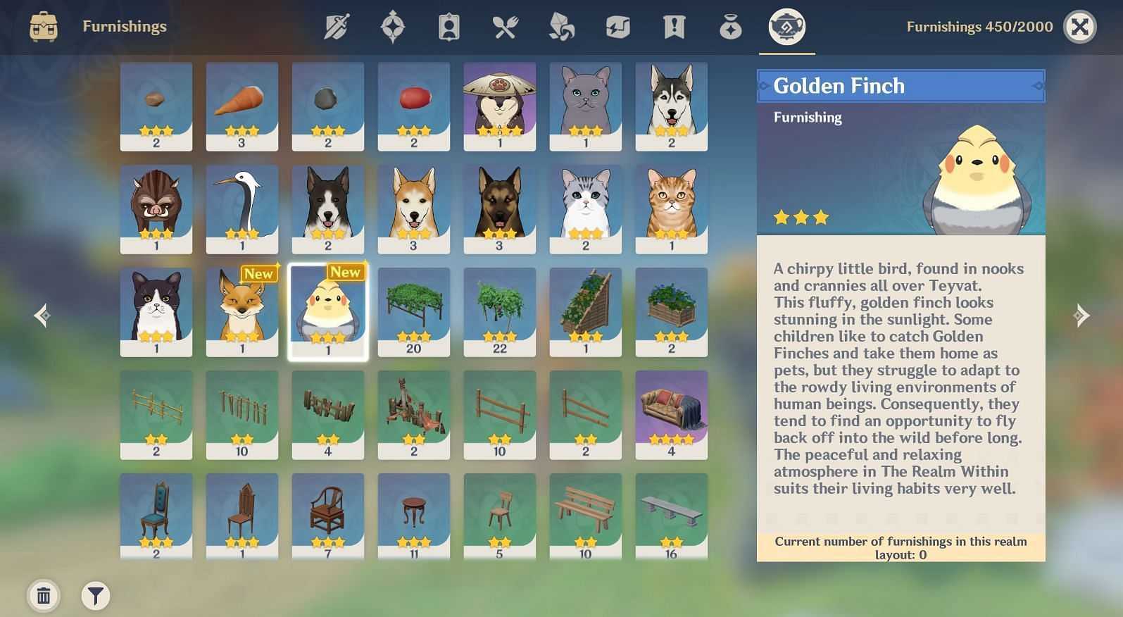Пойманных животных можно увидеть на вкладке «Обстановка» в инвентаре (Изображение предоставлено Genshin Impact).