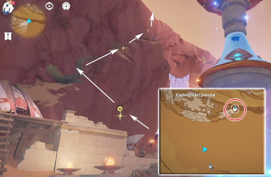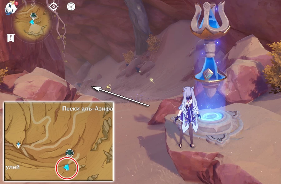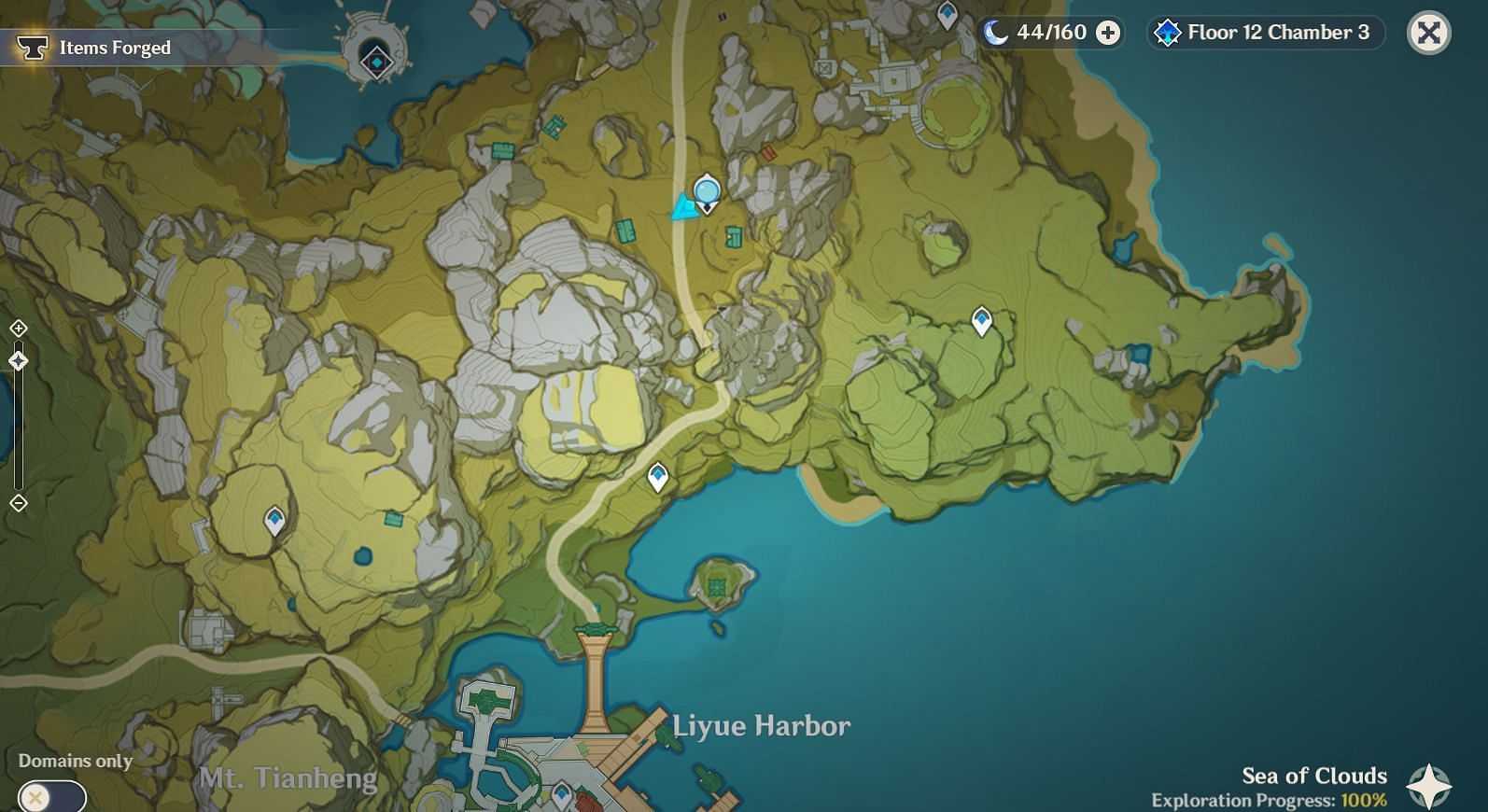 Во-первых, игроки Genshin Impact должны экипировать Сеть всевездесущности из инвентаря на вкладке Гаджет. Обратите внимание, что этот предмет является расходным гаджетом. Другими словами, одну универсальную сеть можно использовать только для поимки одного маленького существа. Телепорт к Статуе Семи к северу от гавани Ли Юэ (Изображение с Genshin Impact)