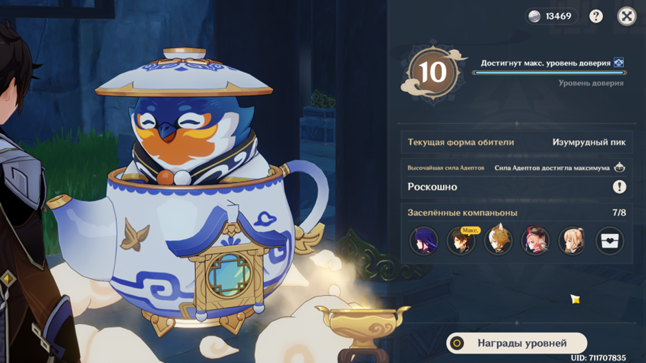 Добавление персонажей в горшок Serenitea и повышение уровня товарищества
