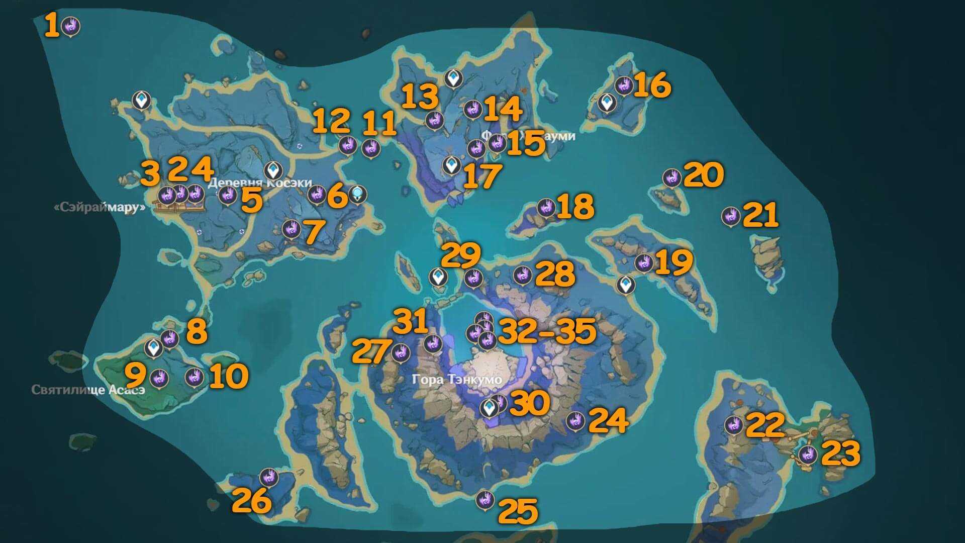 На острове Наруками можно собрать 35 Электрокулов. Карта расположения и подсказки ниже.