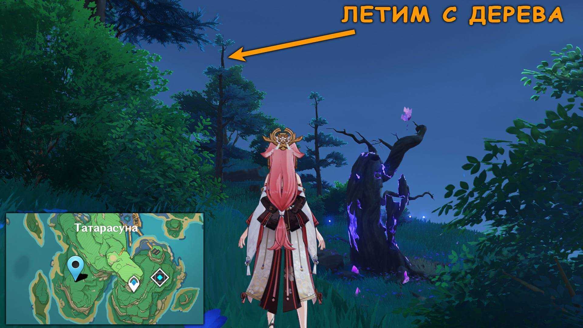 13. На громовой сакуре. Забираемся на соседнее дерево и парим до Электрокула. Чтобы Громовая сакура не била молнией, можно завершить задание Лечение для сакуры.
