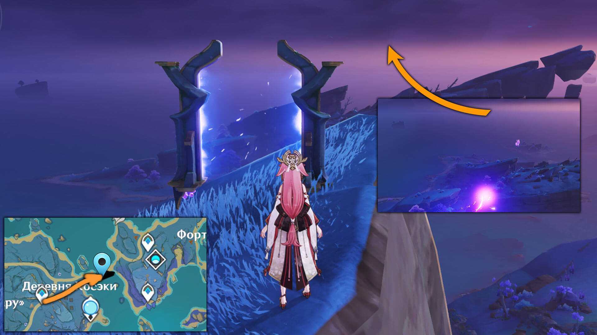Инадзума представляет собой 3-й по счету игровой пункт Тейвата. Т.к. эта новая локация удалена от материка и перекрыта от него океаном, пользователям чтобы проникнуть в эту местность предстоит выполнить ряд заданий. Для того, чтобы попасть в Инадзуму игра предъявляет ряд обязательных требований