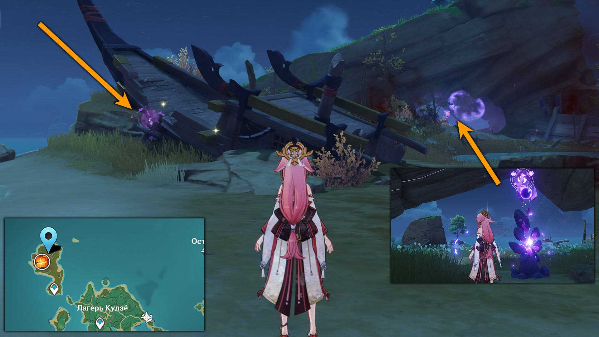 5. Электрокул летает очень высоко в небе. Добраться до него можно с помощью Электрогранума. Ветвь Громовой сакуры находится в пещере возле второй части корабля Сэйраймару. В гайде по прохождению корабля есть подробное описание, как решить головоломку с релейными камнями и забрать Электрокул.
