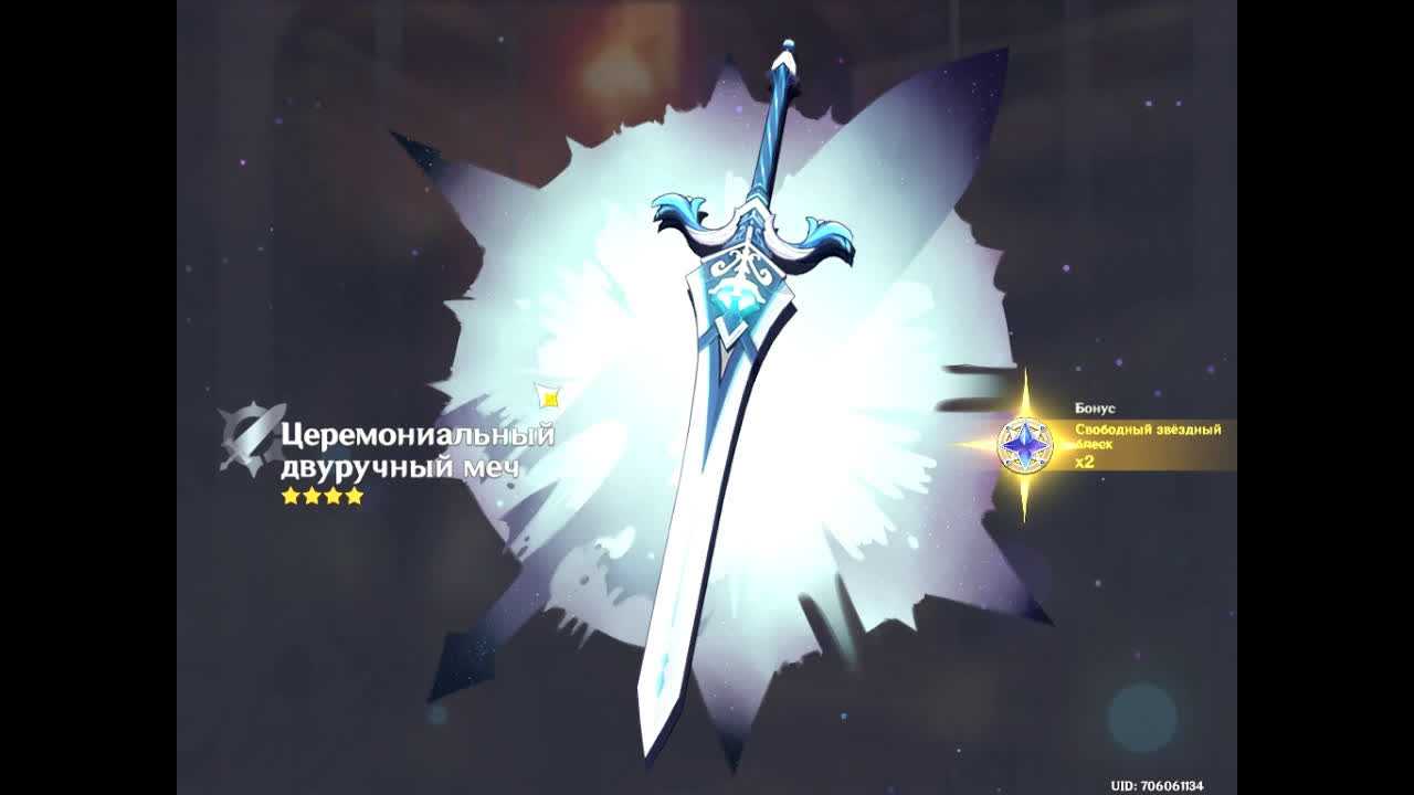 Церемониальный двуручный меч в свою очередь даст больше элементальных сфер энергии и возможность нажимать «Е» дважды. Что на каком-то Чун Юне может быть ценнее. На Синь Янь меч лучше с точки зрения поддержания щита на физ дамагере. Проще говоря, специализированное оружие.