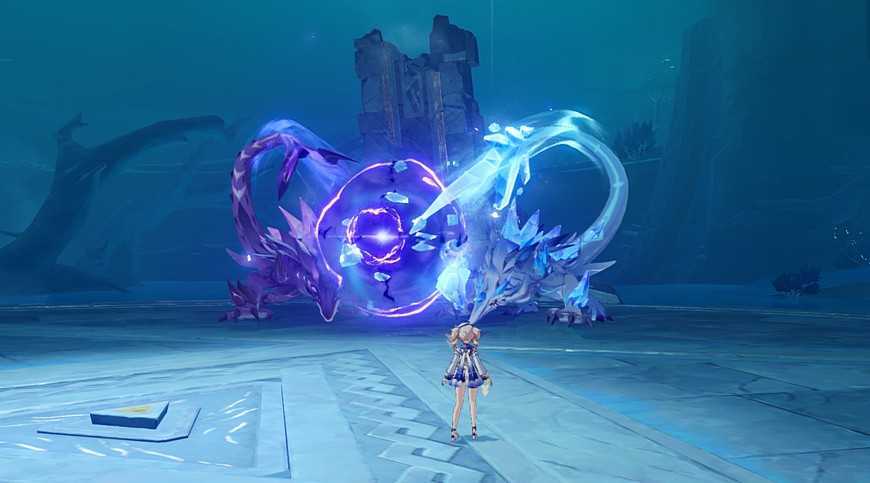 Ложный плавник Дракона глубин (46 шт) — а вот здесь ситуация уже посложнее, так как босс “Стая вишапов глубин”, с которого плавник выпадает, открывается только в конце сюжета Энканомии. Таким образом, сначала нужно пройти основной сюжет, потом историю острова Ватацуми, и только потом откроется доступ к самой Энканомии.