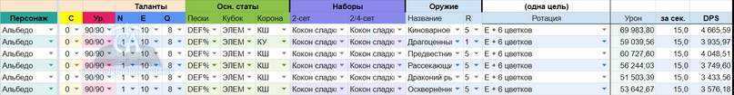 При решении применять Альбедо для увеличения защиты своей команды с помощью стихийных реакций необходимо уделить внимание следующим параметрам: защита / защита с критами /гео урон. Если в вашей группе имеется Пиро или Электро дамагер, например, Дилюк или Кэ Цин, то соберите следующие сеты: