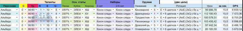 Мем в том, что всего у Альбедо всего лишь 5 рабочих пушек. Это, конечно, забавно, вспоминая, сколько всего я разбирал у других персонажей, но и мне меньше работы, и вам меньше проблем при выборе мечей. Тут все очень просто и конкретно, не запутаешься, короче.