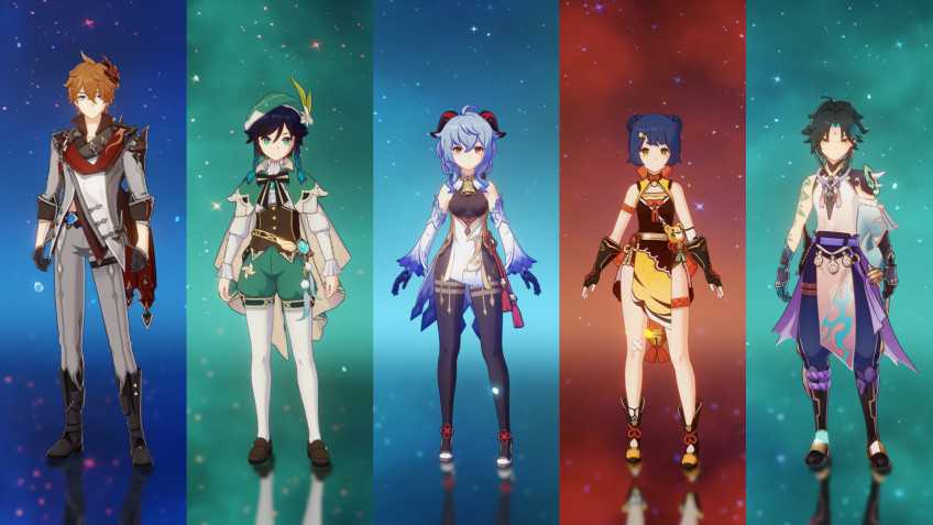 - Дилюк, Кэйя, Барбара , Беннет – первые двое на урон и реакций от стихий, Барбара с Беннетом на крепкую поддержку.