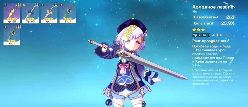 Большая часть недостатков Син Цю перекрывается правильно подобранным оружием и снаряжением.