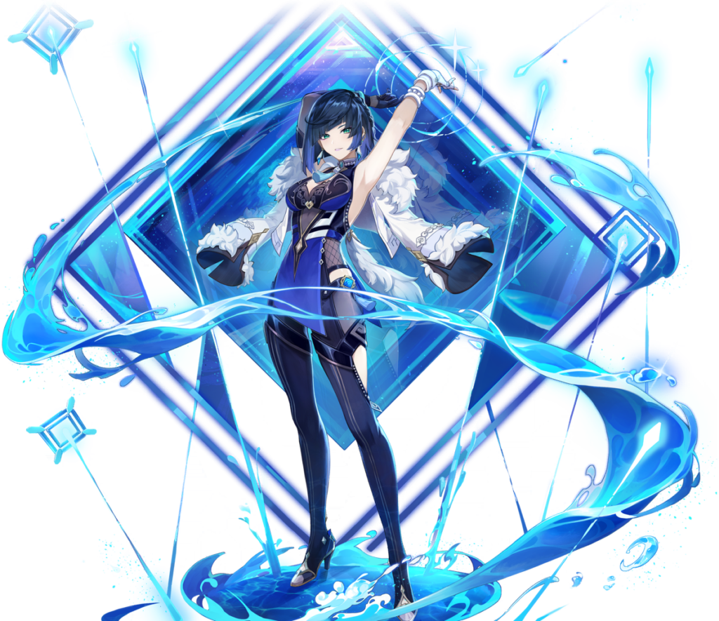 Взрыв стихий Е Лань при активации создает гидро-удар по площади, но главная его функция — это помощь команде совместными гидро-атаками , которые называются “Изысканный бросок”.