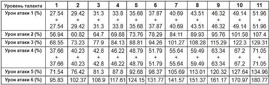 - Обычные атаки (Вихревой удар ) — до 9-10 ур. — основной приоритет.