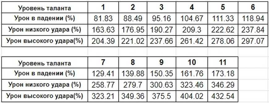 На силу этого таланта влияет не только непосредственная прокачка, но и: