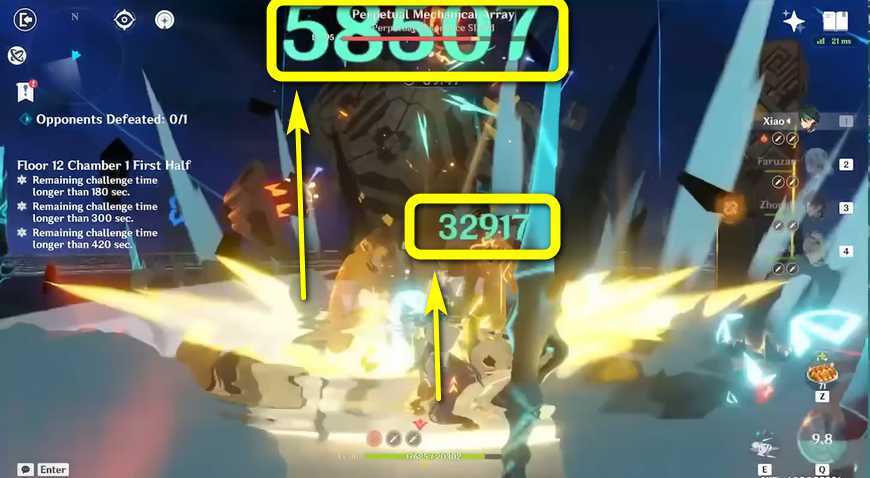 Из-за неспособности во время взрыва стихий генерировать элементальные частицы, жизненно необходимо решать вопрос с восстановлением энергии, чтобы применять “Истребление всего зла” по откату. Этот вопрос решается как при помощи правильно подобранных артефактов и команды, так и оружия на Сяо.