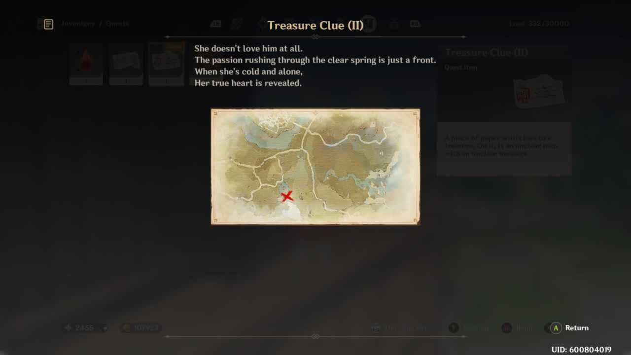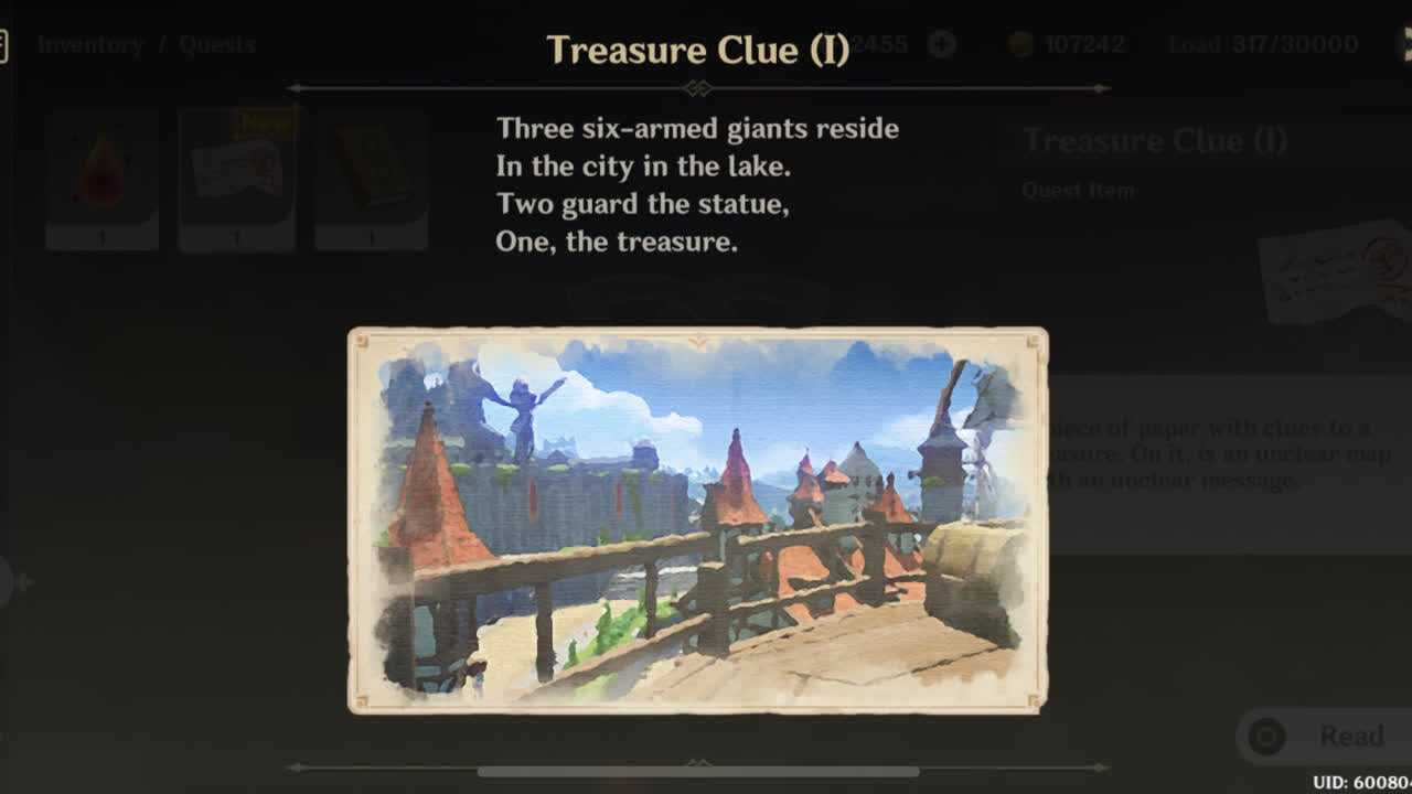 Бегите к трем ветряным мельницам в Мондштадте. Именно на них указывает первая подсказка с листочка информатора. Вас интересует юго-западная. Найдите способ на нее забраться — можете соскользнуть с ближайшего высокого здания, например. Оказавшись в мельнице, откройте сундук и заберите карту со второй подсказкой.