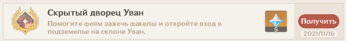 После прибытия игрока к месту назначения его ждет небольшая головоломка. Чтобы пробраться во дворец, придется решить загадку с факелами и обелиском. Задача простая и не занимает много времени. Затем пользователю станет доступен вход в подземелье Уван, которое игроки в Геншин Импакт иногда называют «данж алой ведьмы».