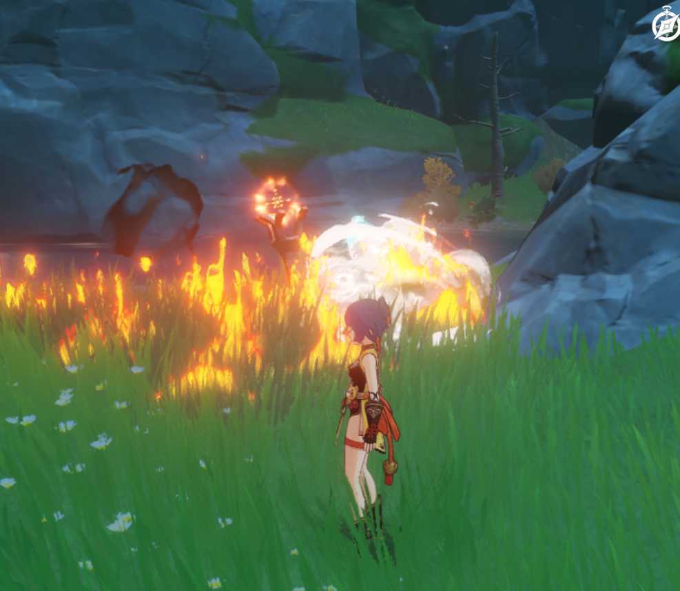 Итак, нужно зажечь факелы для активации данжа. Найти их поможет фея, она облетает каждый факел. Чтобы зажечь их, понадобится пиро-герой, например, Янь Фэй или Ху Тао.