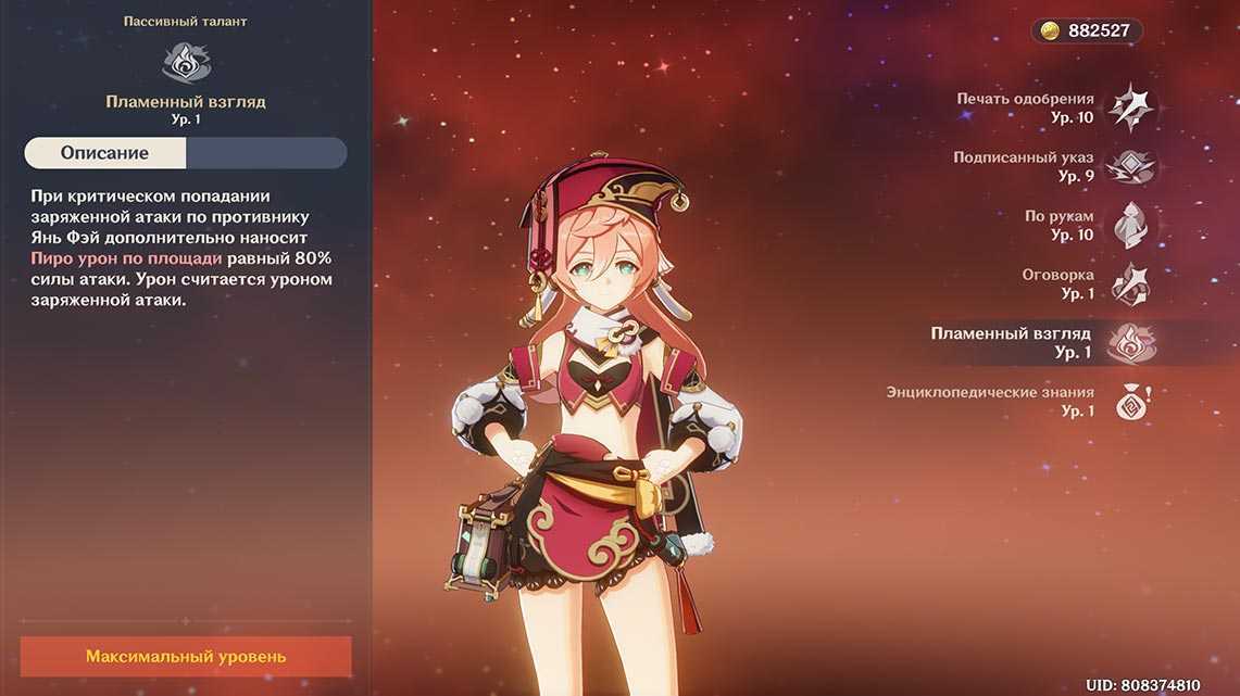 Отдельные характеристики можно завысить больше, чем другие. Например, Янь Фэй может наносить больше урона с высоким шансом крита из-за срабатывающей пассивки, наносящей бонусный пиро урон по площади. Однако, если замаксить критический урон, а шанс крита увеличить с помощью еды, можно увеличить дамаг от обычных и заряженных атак в 2-3 раза.