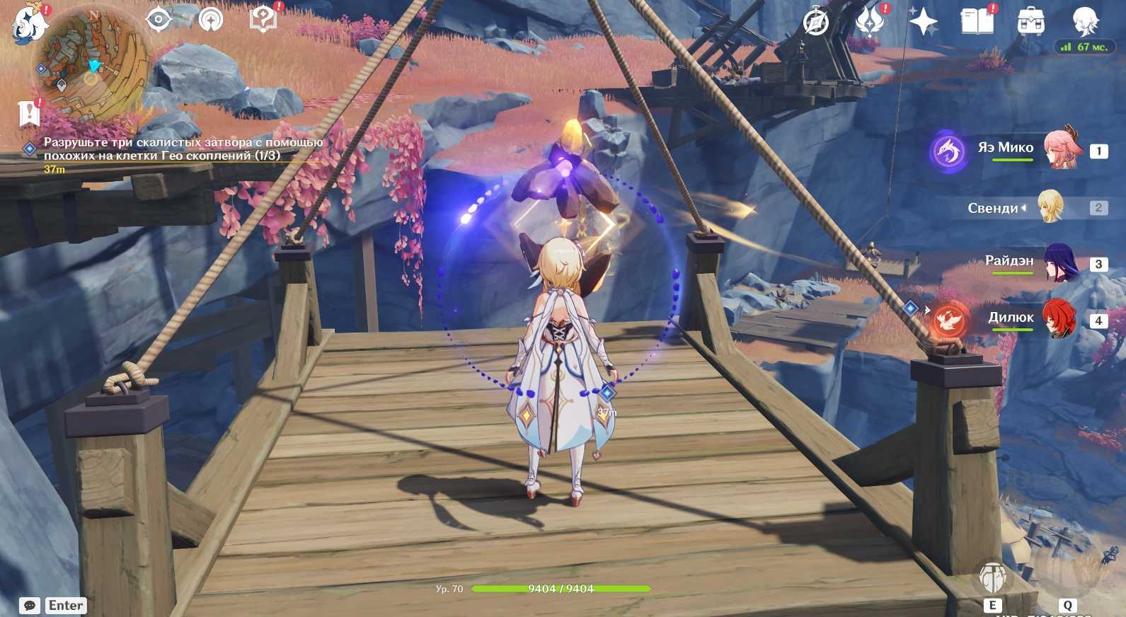 | Подойдите к особой Гео руде разбейте ее с помощью стихийных способностей Гео героя. После разрушения руды вокруг персонажа будет в течение некоторого времени летать маленькая звездочка | ![]() |