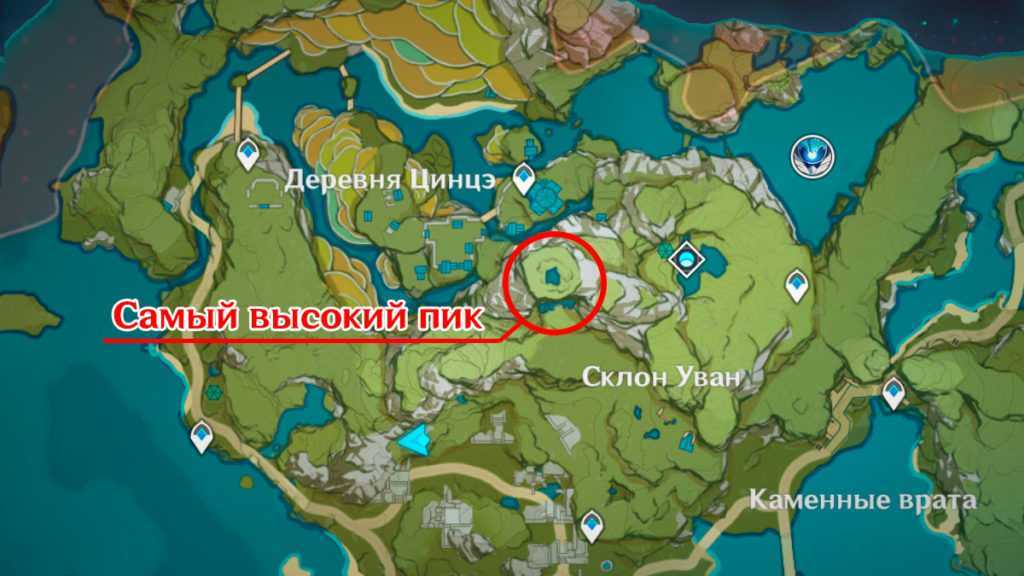Теперь вы получаете задание «Направляйтесь на самый высокий пик деревни Цинцэ и найдите фрагмент». Самую высокую точку рядом с деревней найти не сложно, а вот чтобы туда добраться, придется попотеть.
