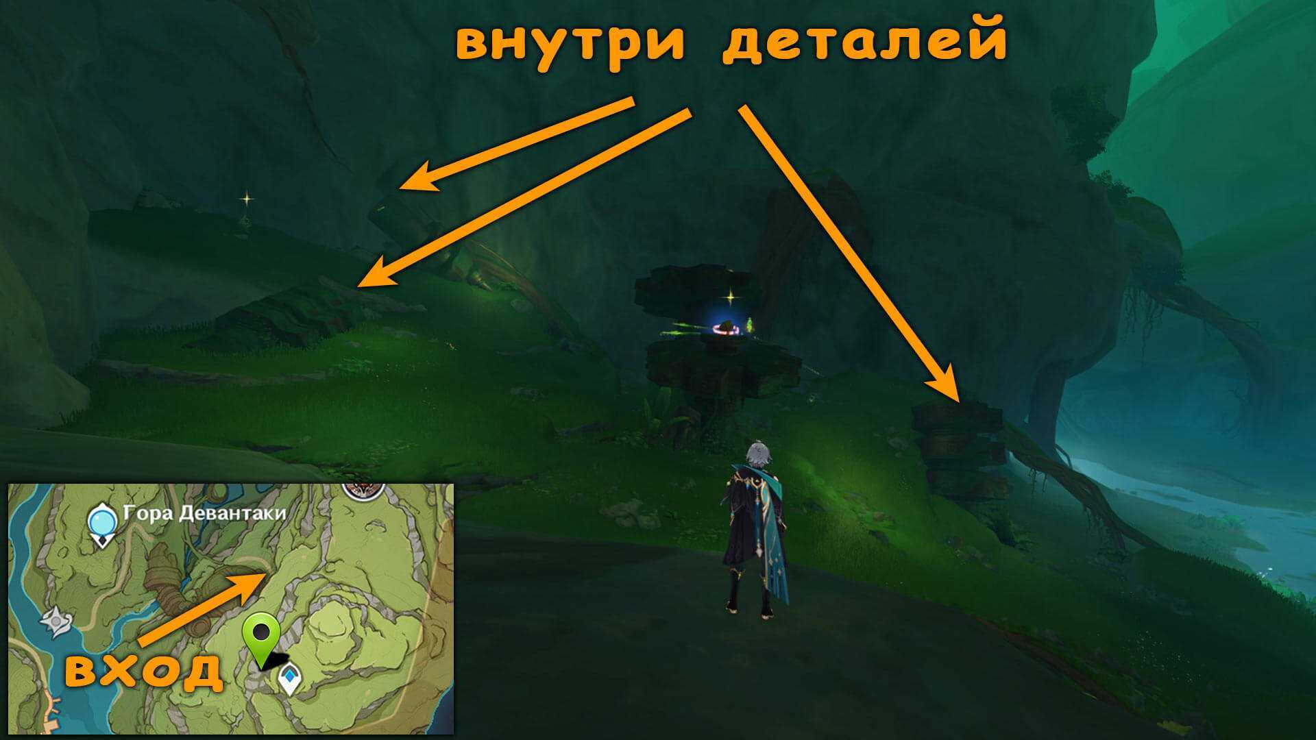 - В пещере с сундуками в игре Genshin Impact Сумеру – необходимо собрать все элементы пергамента в долине Ардрави. Она находится под горой Девантаки.