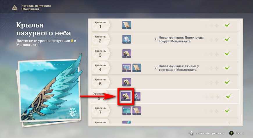 Достигнуть 6-го уровня репутации можно путем выполнения просьб жителей, заказов на монстров, исследованием мира и выполнения мировых квестов Мондштадта.