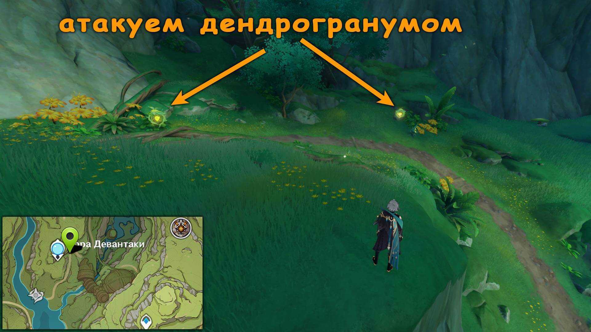 Чтобы появился Удивительный сундук, нужно решить загадку Сумеру: берем Дендрогранум, атакуем цветок, потом атакуем следующий цветок и так далее. Иногда будет появляться Крио попрыгунья.
