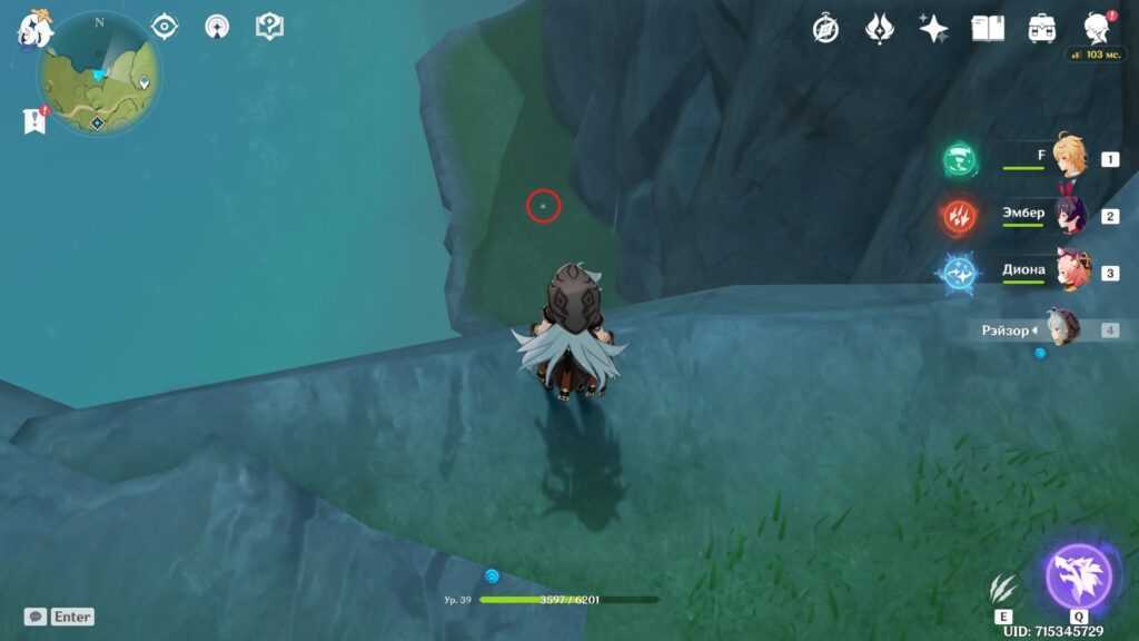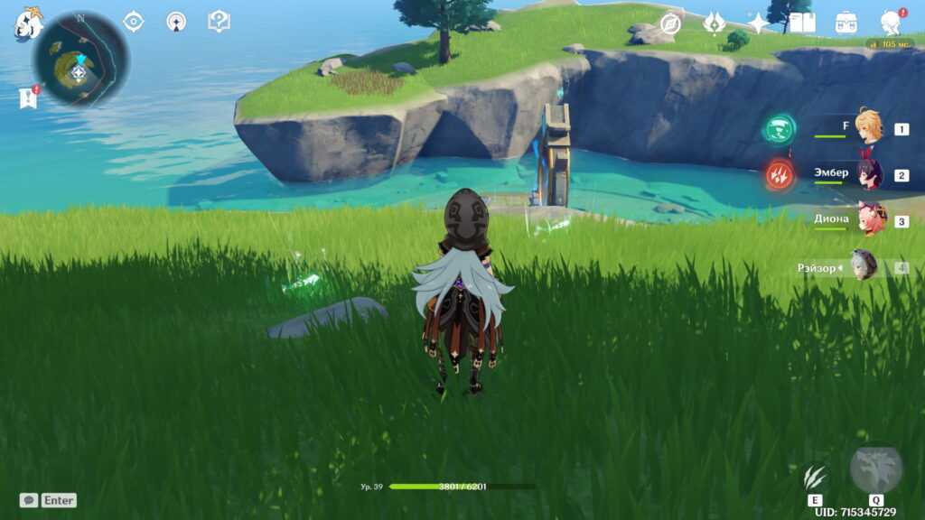 Есть и альтернативный путь. Вы можете долететь до острова с краешка Утеса Звездолова, заодно получив сразу два скрытых достижения. Возьмите в отряд Эмбер и Бэй Доу из-за их чудесных пассивных талантов, помогающих лететь дольше (у Эмбер) и плавать дальше (у Бэй Доу), скушайте еду на выносливость и, если есть, экипируйте инструмент “Веер” за репутацию Инадзумы. Впрочем, можно и без него. Не рекомендуем использовать этот метод с низкой выносливостью.