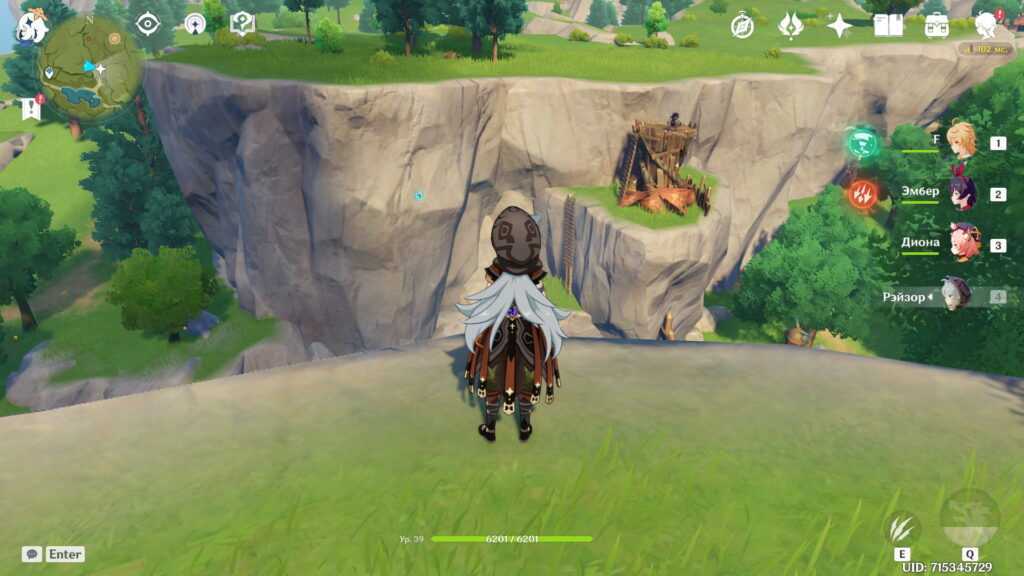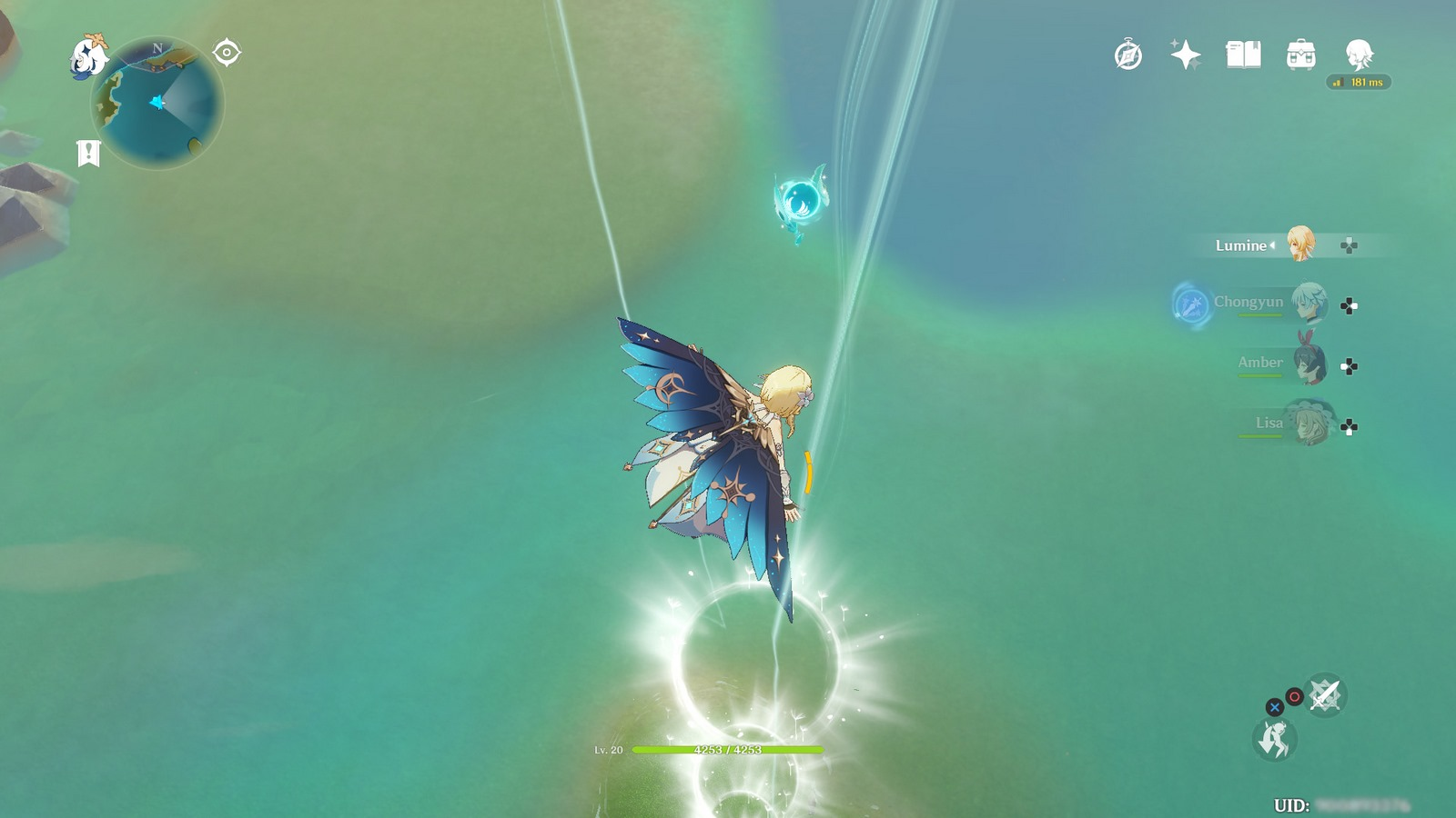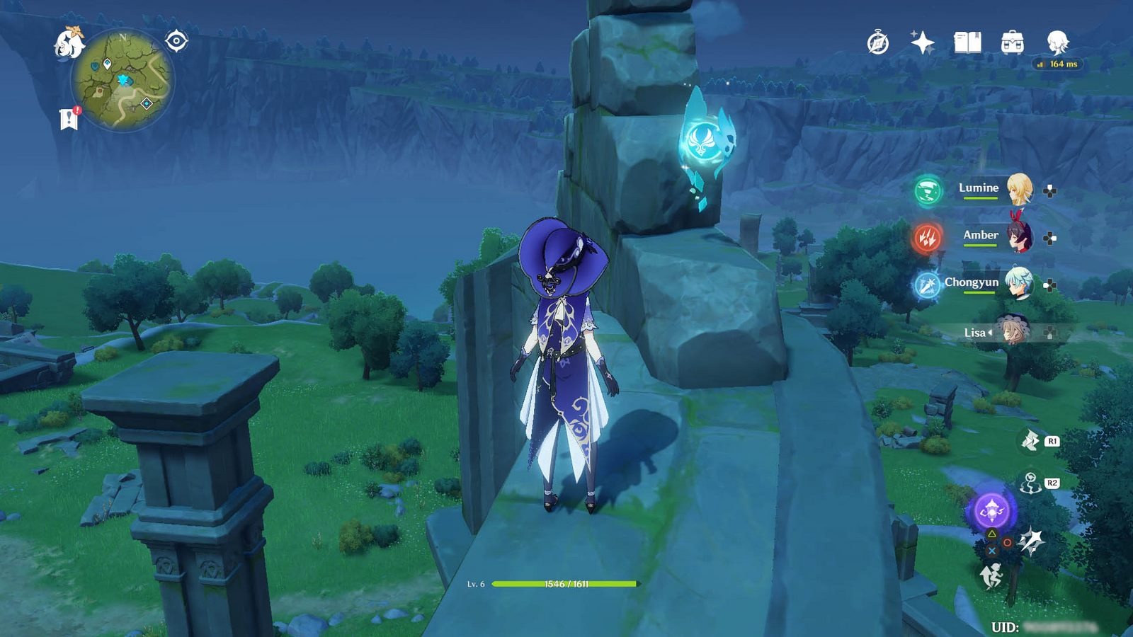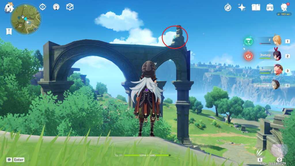 - Парит высоко в воздухе над водной гладью. Самый простой способ получить его – активировать анемо-механизм и воспользоваться образовавшимся потоком воздуха. Альтернативный вариант – телепортироваться к ближайшему телепорту на Утесе Звездолова и долететь до анемокула с помощью планера.