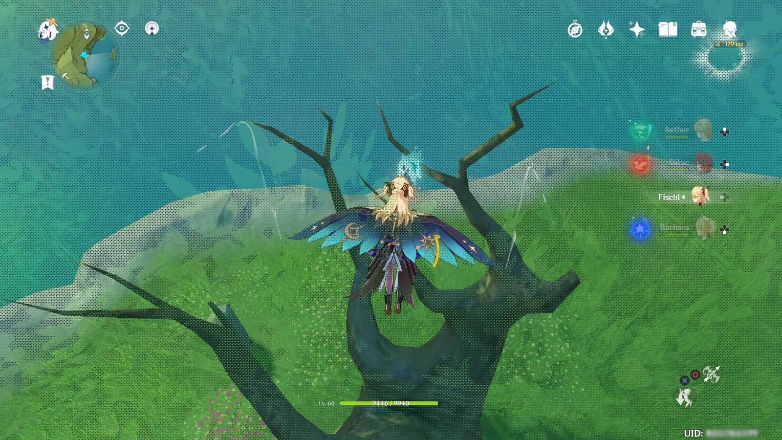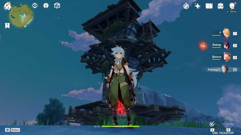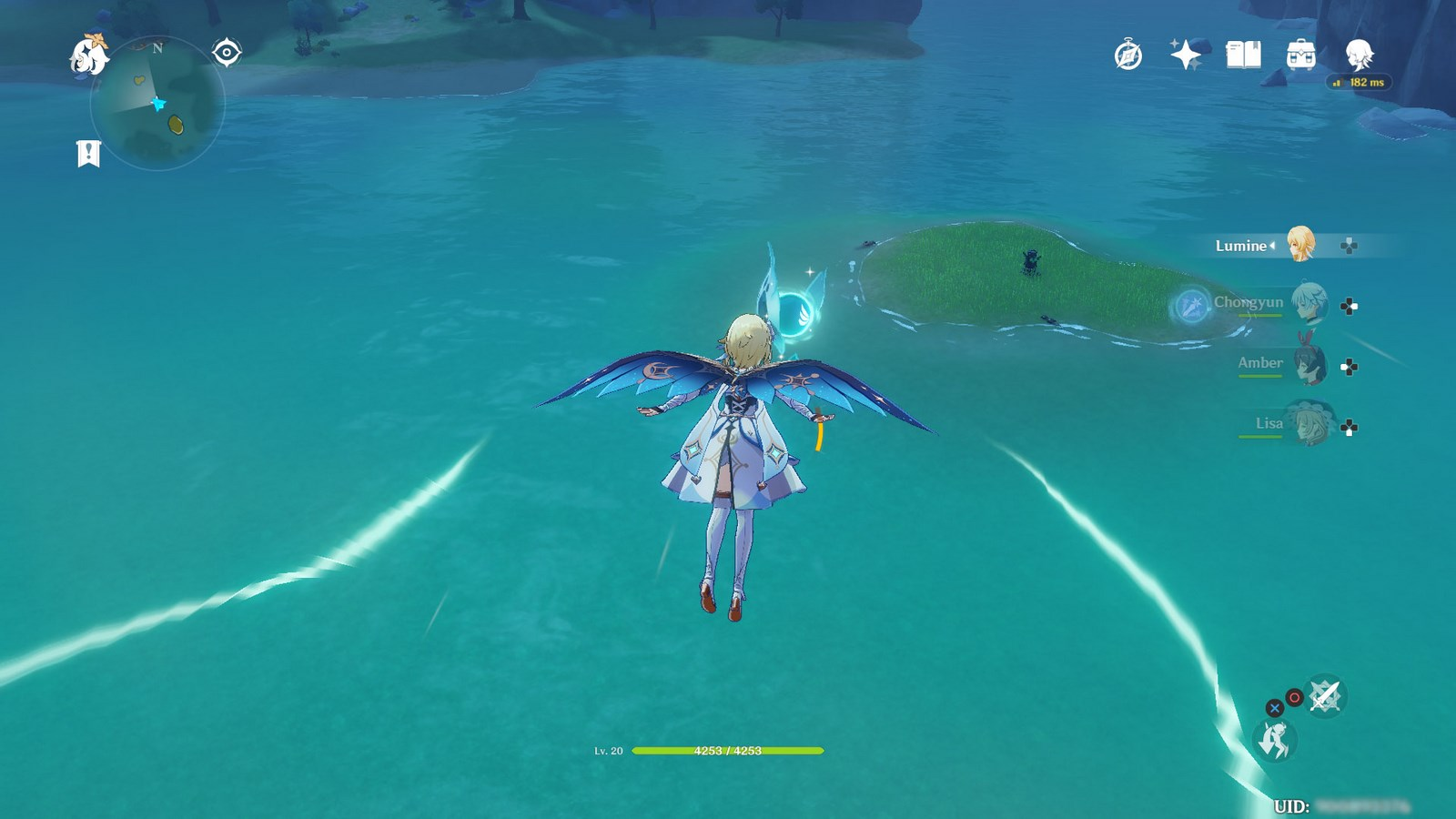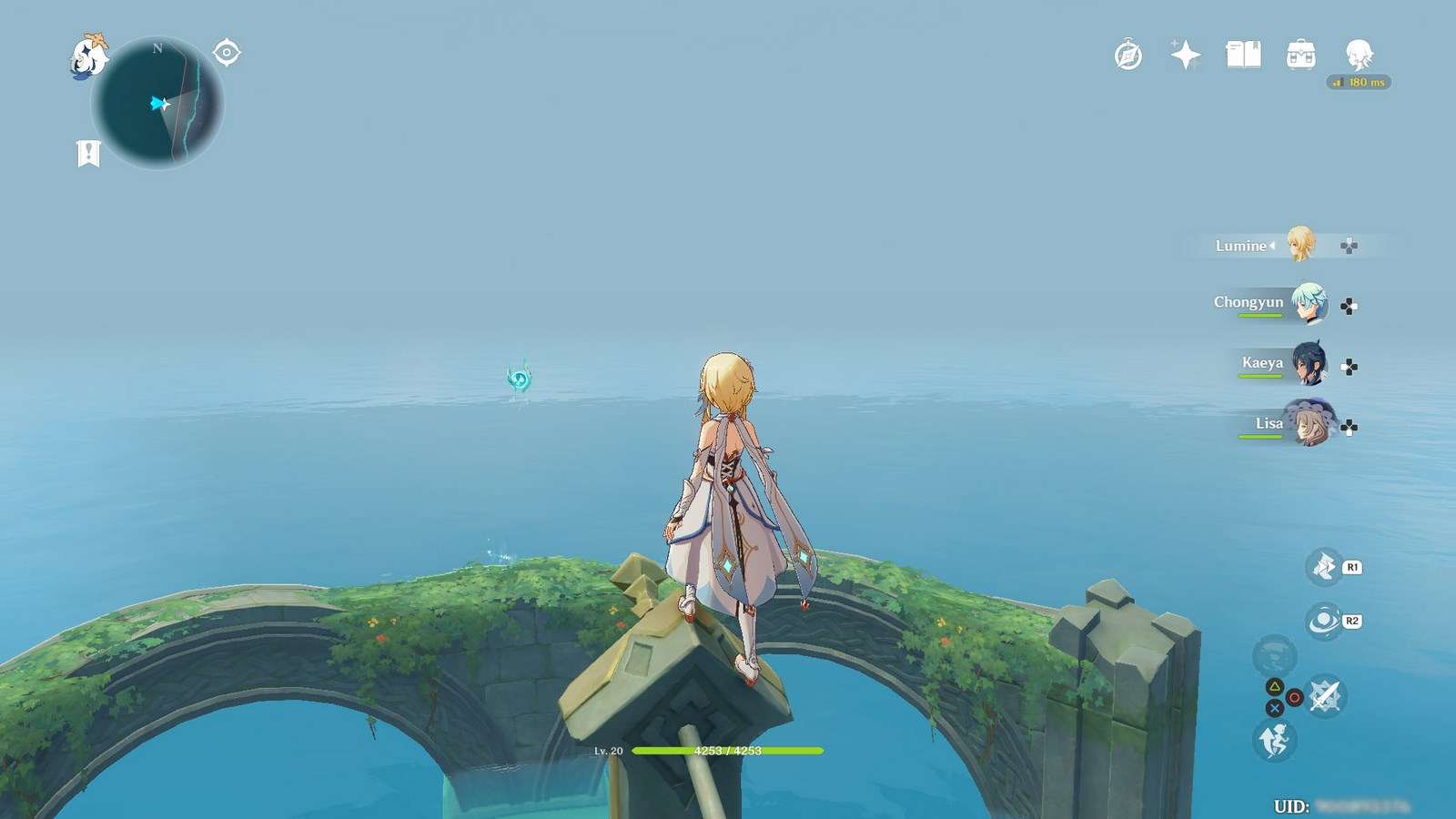 - Парит высоко в воздухе над водной гладью. Самый простой способ получить его – активировать анемо-механизм и воспользоваться образовавшимся потоком воздуха. Альтернативный вариант – телепортироваться к ближайшему телепорту на Утесе Звездолова и долететь до анемокула с помощью планера.