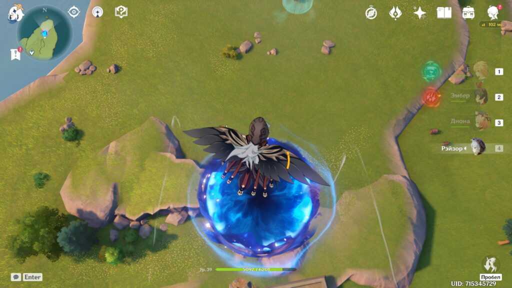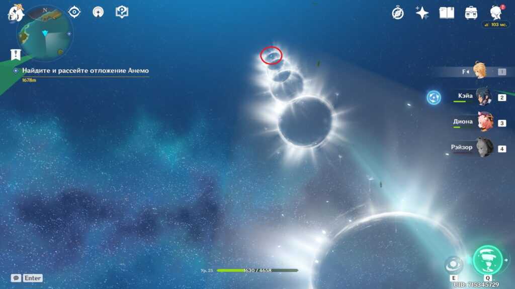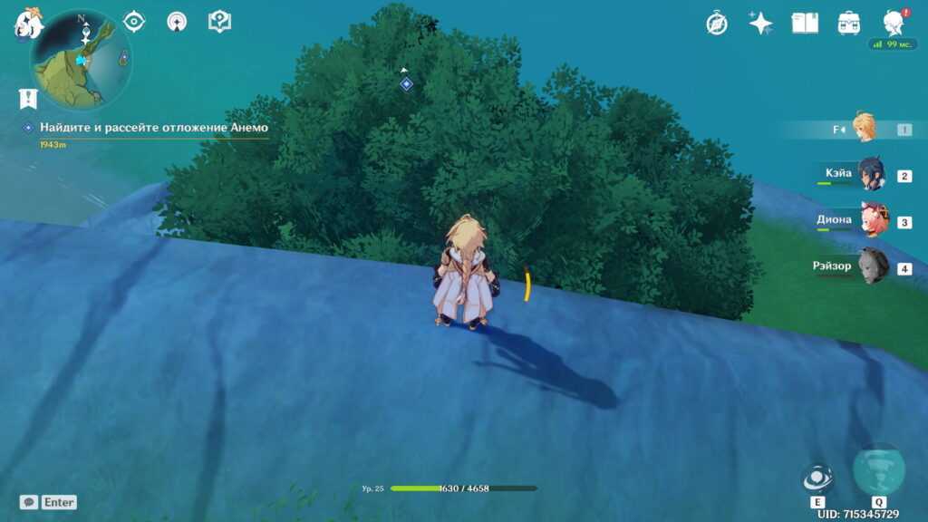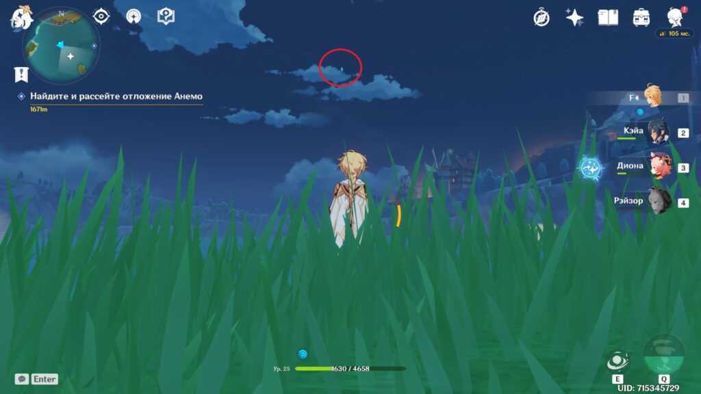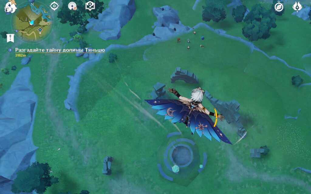 - Парит в воздухе на большой высоте. Чтобы получить анемокул, активируйте анемо-механизм и взлетите вверх с помощью образовавшегося потока воздуха. Для активации механизма нужно использовать способность анемо-героя, например, Венти или Путешественника.