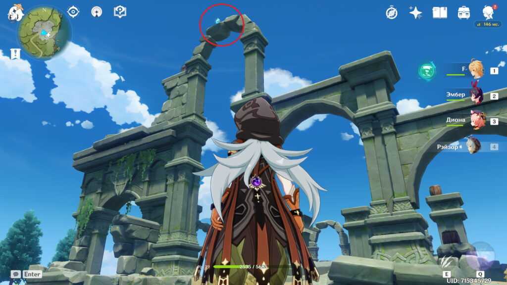 Используйте Анемо навык на монументе Анемо, чтобы создать поток ветра.