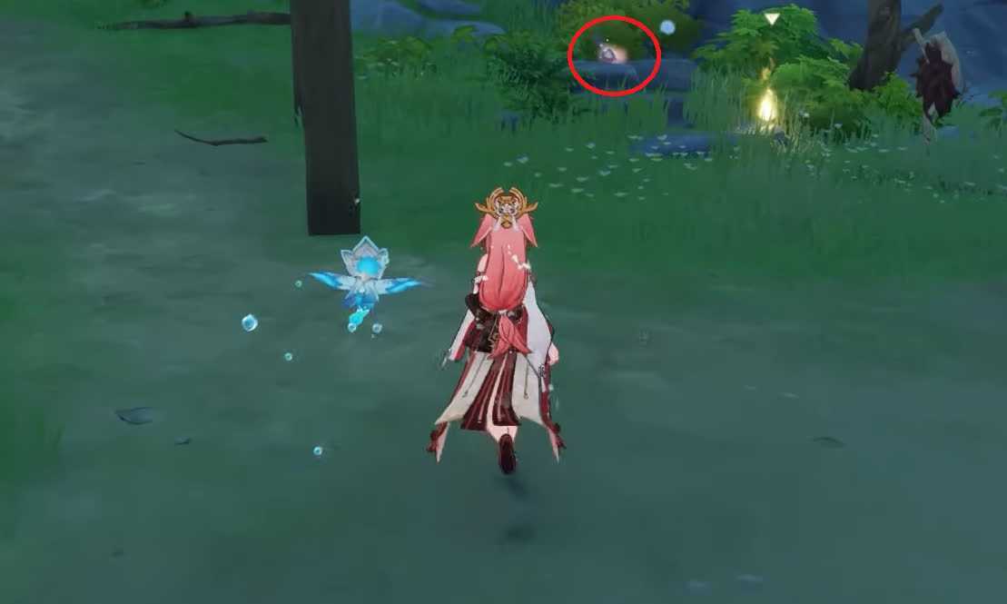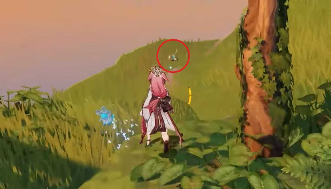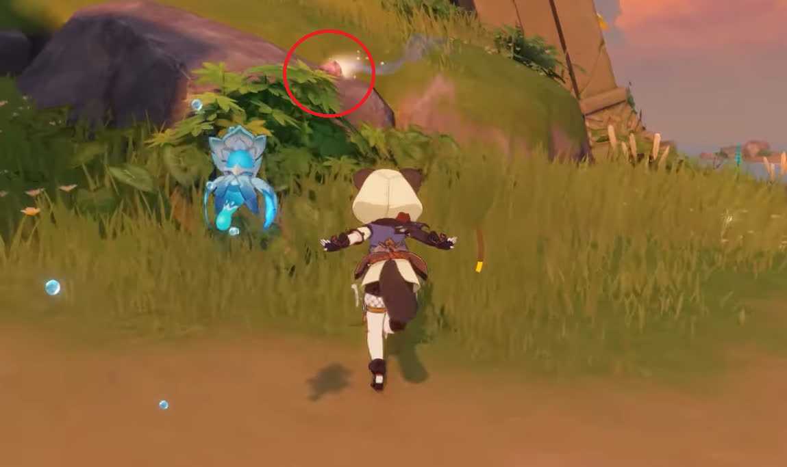 Рядом со следующей зоной находятся несколько Хиличурлов, но с ними легко справиться. Чтобы попасть сюда, просто идите на запад от предыдущего места.